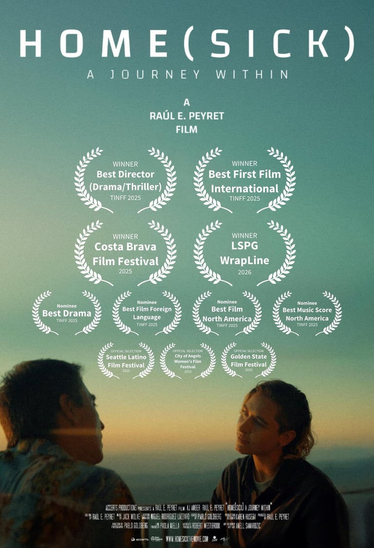 Written and directed by Raúl Peyret, Home(sick) blends rich storytelling with a profound exploration of what it means to belong. Known for capturing authentic human emotions, Peyret brings personal insights drawn from experiences in both Argentina and the United States. Home(sick) is Peyret’s debut feature film and was officially selected for the Women's Film Festival in 2023, marking a milestone in his career. With recurring themes of identity, memory, and cultural ties, Peyret crafts an intimate portrayal of self-discovery and human connection.